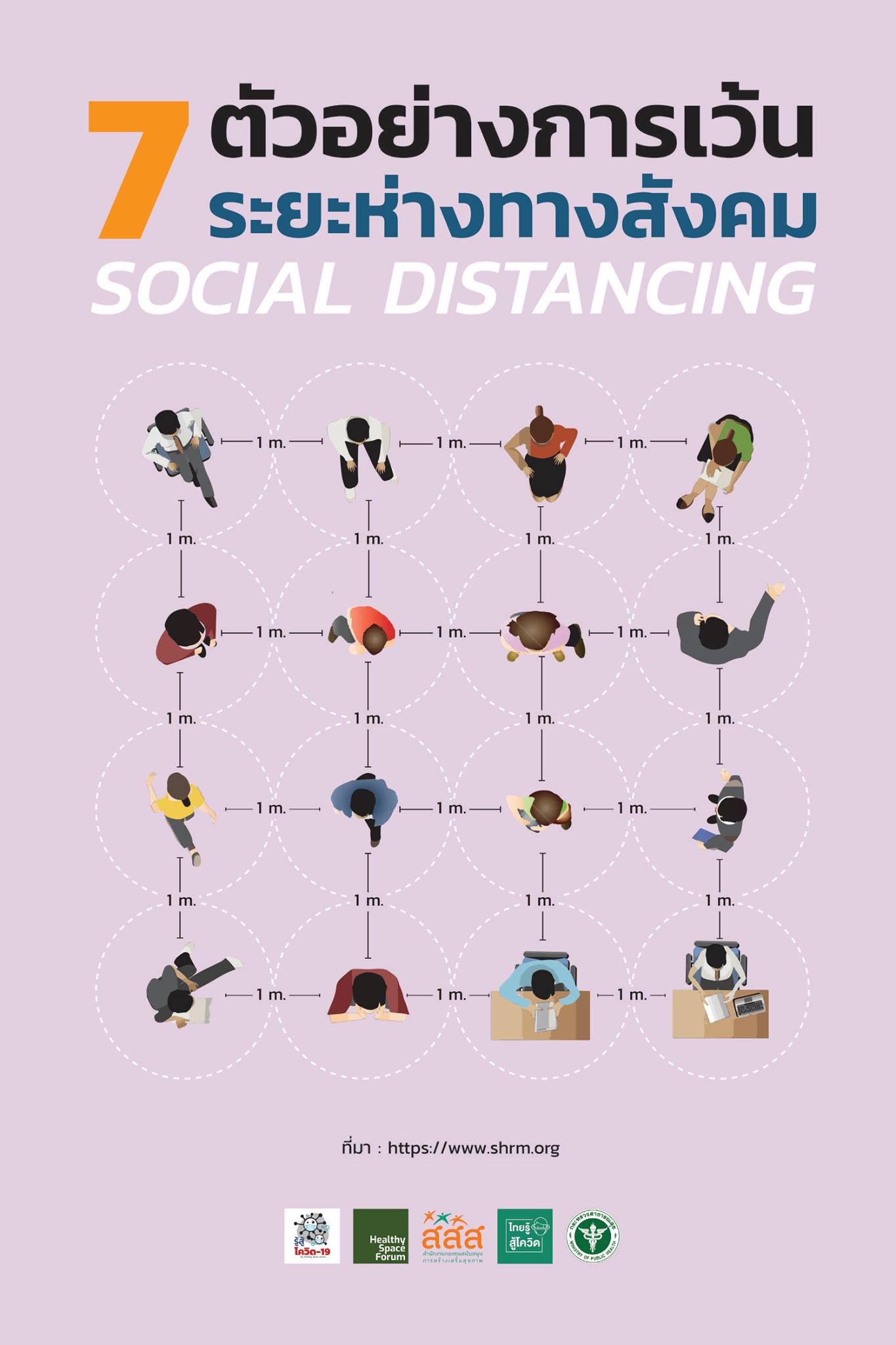 ระยะห่างทางสังคม หรือ ระยะปลอดภัย เป็นการเพิ่มระยะห่างระหว่างบุคคล ป้องกันการสัมผัสและการติดต่อของโรค ซึ่งจะช่วยให้ทุกคนปลอดภัย และยับยั้งการแพร่กระจาย ของไวรัส COVID-19