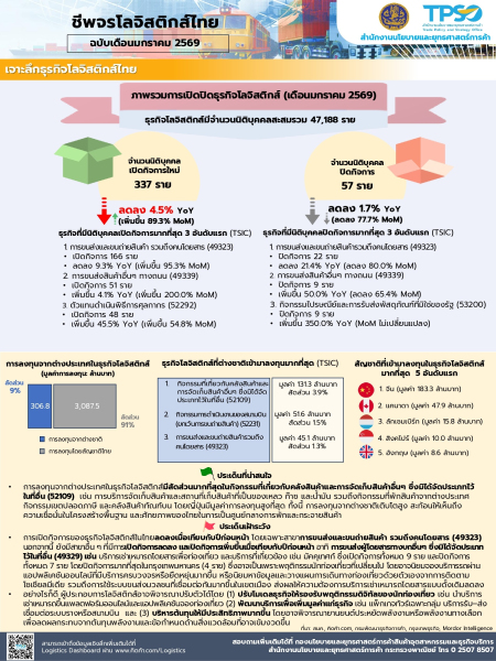 ข้อมูลโดย : กองนโยบายและยุทธศาสตร์การค้าสินค้าอุตสาหกรรมและธุรกิจบริการ