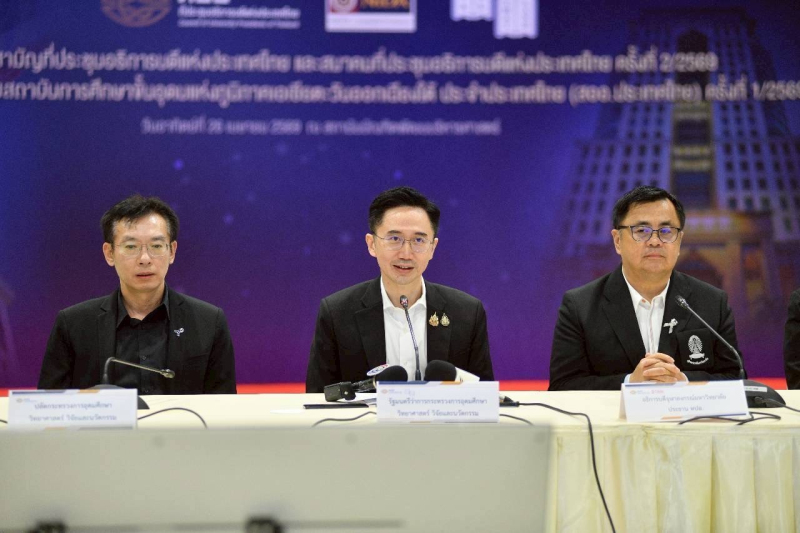เมื่อวันที่ 26 เม.ย. 2569 ศ.ดร.ยศชนัน วงศ์สวัสดิ์ รองนายกรัฐมนตรีและรัฐมนตรีว่าการกระทรวงการอุดมศึกษา วิทยาศาสตร์ วิจัยและนวัตกรรม (อว.) มอบนโยบายด้านการอุดมศึกษา วิทยาศาสตร์ วิจัยและนวัตกรรมแก่ที่ประชุมอธิการบดีแห่งประเทศไทย เพื่อเป็นแนวทางในการขับเคลื่อนภารกิจของสถาบันอุดมศึกษาให้สอดคล้องกับยุทธศาสตร์ชาติและนโยบายของกระทรวง โดยมี ศ.ดร.ศุภชัย ปทุมนากุล ปลัดกระทรวง อว. ทพ.ญ.ศรีญาดา ปาลิมาพันธ์ ที่ปรึกษา รมว.อว. นายศึกษิษฏ์ ศรีจอมขวัญ รองเลขาธิการนายกรัฐมนตรีฝ่ายการเมือง นายฉัตริน จันทร์หอม เลขานุการ  รมว.อว. ศ.ดร.วิเลิศ ภูริวัชร ประธานที่ประชุมอธิการบดีแห่งประเทศไทย และอธิการบดีจุฬาลงกรณ์มหาวิทยาลัย คณะผู้บริหารกระทรวง อว. พร้อมด้วยคณะผู้บริหารสถาบันอุดมศึกษา เข้าร่วม ณ หอประชุมเฉลิมพระเกียรติ 6 รอบพระชนมพรรษาสถาบันบัณฑิตพัฒนบริหารศาสตร์ (NIDA)
