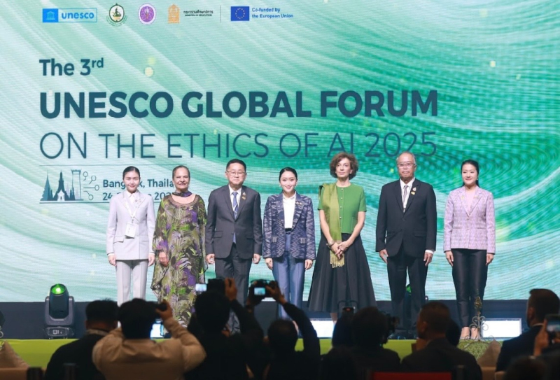 การประชุม The 3rd UNESCO Global Forum on the Ethics of Artificial Intelligence (GFEAI 2025) จัดขึ้นตั้งแต่วันที่ 24 - 27 มิถุนายน 2568 เพื่อเป็นเวทีระหว่างประเทศในการส่งเสริมการประยุกต์ใช้ปัญญาประดิษฐ์อย่างมีความรับผิดชอบ และไม่ละเมิดสิทธิมนุษยชน ตามแนวทางข้อเสนอแนะว่าด้วยจริยธรรมสำหรับปัญญาประดิษฐ์ของยูเนสโก (Recommendation on the Ethics of Artificial Intelligence) ซึ่งสมาชิกยูเนสโกทั้งหมด 194 ประเทศได้เห็นพ้องในการร่วมมือกันผลักดันตามข้อเสนอแนะฯ เมื่อปี 2564 รวมถึงเป็นการยกระดับบทบาทไทยในเวทีโลก ในการกำหนดนโยบายและมาตรฐานปัญญาประดิษฐ์ เสริมสร้างภาพลักษณ์ไทยเป็นผู้นำจริยธรรมปัญญาประดิษฐ์ของภูมิภาค กระตุ้นการแลกเปลี่ยนและพัฒนาองค์ความรู้ด้านปัญญาประดิษฐ์ ส่งเสริมให้ภาครัฐและภาคเอกชนมีความตื่นตัวกับจริยธรรมปัญญาประดิษฐ์