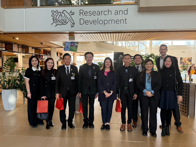 เมื่อวันที่ 12 มีนาคม 2569 ศ.ดร.ศุภชัย ปทุมนากุล ปลัดกระทรวงการอุดมศึกษา วิทยาศาสตร์ วิจัยและนวัตกรรม (อว.) พร้อมด้วย รศ.ดร.ชลวิทย์ เจียรจิตต์ อธิการบดี มหาวิทยาลัยศรีนครินทรวิโรฒ นายสมเกียรติ กมลพันธ์ อัครราชทูตที่ปรึกษา (การอุดมศึกษา วิทยาศาสตร์ วิจัย และนวัตกรรม) ประจำสถานเอกอัครราชทูต ณ กรุงบรัสเซลส์ และ น.ส.มีนา กลการวิทย์ ที่ปรึกษา สถานเอกอัครราชทูต ณ กรุงเบิร์น พร้อมด้วยคณะนักวิจัยไทย เข้าร่วมประชุมหารือกับผู้บริหาร Nestlé Research นำโดย Ms. Christian Macina, Head of Corporate Affairs และ Ms. Melanie Kohli, Head of R&D Strategy and Chief of Staff ณ ศูนย์วิจัย Nestlé Research เมือง โลซาน ใน สมาพันธรัฐสวิส