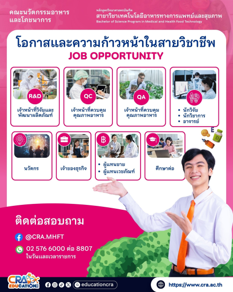 สำหรับผู้ที่สนใจร่วมเป็นส่วนหนึ่งของการขับเคลื่อนนวัตกรรมอาหารเพื่ออนาคต สามารถสอบถามรายละเอียดเพิ่มเติมได้ที่: Facebook: @CRA.MHFT โทรศัพท์: 02 576 6000 ต่อ 8807 (ในวันและเวลาราชการ)