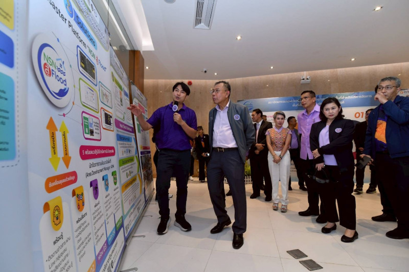 โครงการวิจัยฯ ได้พัฒนาระบบแจ้งเหตุอุทกภัยผ่านช่องทาง Line Official Account (Line OA) เพื่อเพิ่มประสิทธิภาพในการสื่อสารระหว่างประชาชนกับหน่วยงานที่เกี่ยวข้องในภาวะฉุกเฉิน ตลอดจนสนับสนุนบทบาทของสถาบันการศึกษาในการถ่ายทอดองค์ความรู้ผ่านชุดวิดีโอฝึกอบรม และสร้างระบบอาสาสมัครในระดับพื้นที่ เพื่อยกระดับขีดความสามารถของชุมชนในการเตรียมพร้อมและรับมือกับอุทกภัยของจังหวัดนครสวรรค์ในระยะยาวต่อไป จากนั้น ผู้ช่วย รมว.อว. และคณะ เดินทางไปยัง “พาสาน” เยี่ยมชมต้นกำเนิดแม่น้ำเจ้าพระยา โดยมีนักศึกษาสาขาวิชาการท่องเที่ยวฯ มรภ.นครสวรรค์ พาเยี่ยมชม
