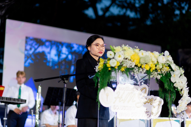 จากนั้น รองปลัดกระทรวง อว. กล่าวว่า ความพิเศษของปีนี้ คือเราตั้งใจน้อมรำลึกถึงพระมหากรุณาธิคุณของทั้งสองพระองค์ควบคู่กัน ทั้งพระบาทสมเด็จพระบรมชนกาธิเบศร มหาภูมิพลอดุลยเดชมหาราช บรมนาถบพิตร และสมเด็จพระนางเจ้าสิริกิติ์ พระบรมราชินีนาถ พระบรมราชชนนีพันปีหลวง ในฐานะคู่พระบารมีที่ทรงทุ่มเทพระวรกายและพระราชหฤทัยเพื่อชาติบ้านเมืองตลอดมา งานนี้จึงเป็นเสมือนการรวมดวงใจของพสกนิกรในการถวายน้อมความอาลัย และสืบสานพระราชปณิธานผ่านเสียงดนตรีอันงดงาม