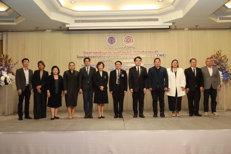 เมื่อวันที่ 23 ธันวาคม 2568 ดร.วันนี นนท์ศิริ หัวหน้าผู้ตรวจราชการกระทรวงการอุดมศึกษา วิทยาศาสตร์ วิจัยและนวัตกรรม (อว.) เป็นประธานเปิดการประชุมเชิงปฏิบัติการเพื่อสร้างความรู้ความเข้าใจและส่งเสริมการมีส่วนร่วมในการขับเคลื่อนโครงการเร่งรัดและขยายผลการผลิตกำลังคนสมรรถนะสูง โดยหลักสูตรสหกิจศึกษาและการศึกษาเชิงบูรณาการกับการทำงาน (Cooperative and Work Integrated Education: CWIE) ประจำปีงบประมาณ พ.ศ. 2569 โดยมี นายสมบัติ รุ่งรัศมี ผู้อำนวยการกองยกระดับคุณภาพการจัดการศึกษาระดับอุดมศึกษา รักษาการที่ปรึกษาด้านพัฒนา อว. ดร.พรชัย มงคลวนิช อธิการบดีมหาวิทยาลัยสยาม และประธานเครือข่าย CWIE ภาคกลางตอนล่าง พร้อมด้วยผู้บริหารสถาบันอุดมศึกษาและบุคลากรด้าน CWIE เข้าร่วม ณ ห้อง Rainbow Hall ชั้น 17 โรงแรมใบหยกสกาย กรุงเทพมหานคร