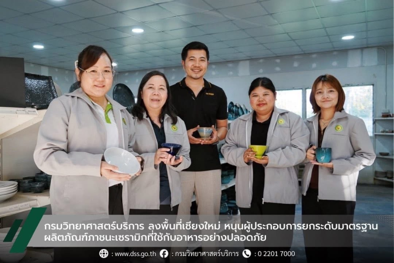 วันที่ 7 มกราคม 2569 กรมวิทยาศาสตร์บริการ (วศ.) กระทรวงการอุดมศึกษา วิทยาศาสตร์ วิจัยและนวัตกรรม (อว.) นำโดย นางสาวดวงกมล เชาวน์ศรีหมุด ผู้อำนวยการศูนย์ตรวจและรับรองคุณภาพผลิตภัณฑ์ พร้อมคณะลงพื้นที่ติดตามและให้คำแนะนำแก่ผู้ประกอบการ “ณ นว (NA NAWA) เซรามิก” ผู้พัฒนาผลิตภัณฑ์เซรามิก นวัตกรรมที่ผสานงานหัตถศิลป์เข้ากับการใช้งานจริง ตอบโจทย์ผู้บริโภคที่ให้ความสำคัญกับคุณภาพและความปลอดภัยของผลิตภัณฑ์