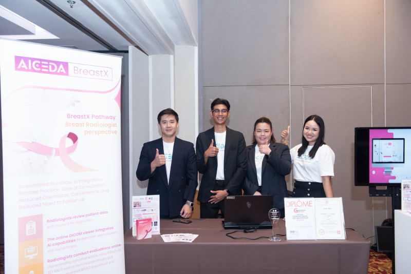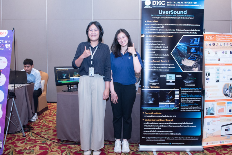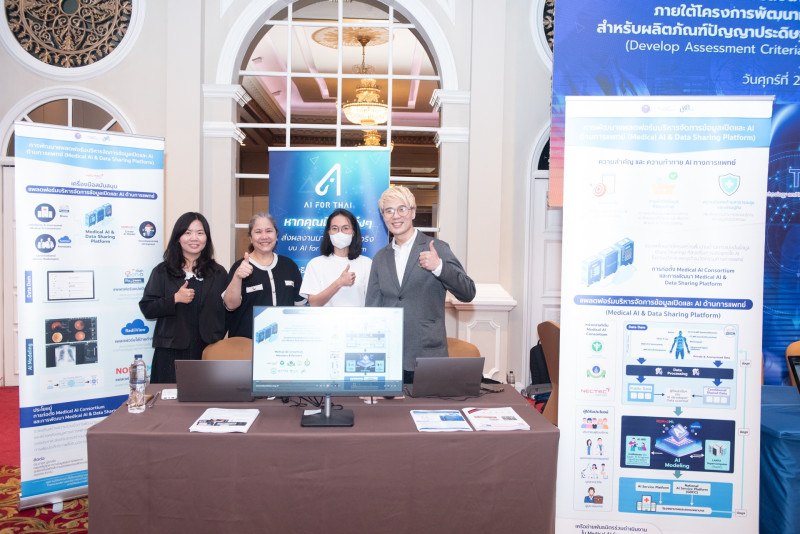 ทั้งนี้ภายในงานมีการจัดแสดงผลงาน 5 ผลิตภัณฑ์ AI เครื่องมือแพทย์ที่ผ่านการทดสอบตามมาตรฐานสากลและพร้อมก้าวสู่การขึ้นทะเบียนเครื่องมือแพทย์ ได้แก่ ‘BITNET’ ระบบคัดกรองความผิดปกติในช่องท้องส่วนบนแบบเรียลไทม์ที่ช่วยแยกกลุ่มโรคได้แม่นยำถึง 14 กลุ่ม ‘TrueEye Health Screening’ แอปพลิเคชันประเมินความเสี่ยงโรคเบาหวานขึ้นจอตาและโรคไตเรื้อรังจากรูปถ่ายจอประสาทตา ‘AI Hip Fracture Detection’ ที่ใช้ตรวจจับและระบุตำแหน่งกระดูกสะโพกหักจากภาพเอกซเรย์ ‘Liversound’ ระบบช่วยคัดกรองมะเร็งตับด้วยอัลตราซาวด์ที่มาพร้อมระบบแจ้งเตือนเมื่อพบรอยโรคที่มีความเสี่ยง และ ‘Aiceda BreastX’ แพลตฟอร์มคลาวด์สำหรับตรวจหามะเร็งเต้านมเบื้องต้นที่รองรับการประมวลผลภาพจำนวนมากและสามารถออกรายงานผลได้ทันที