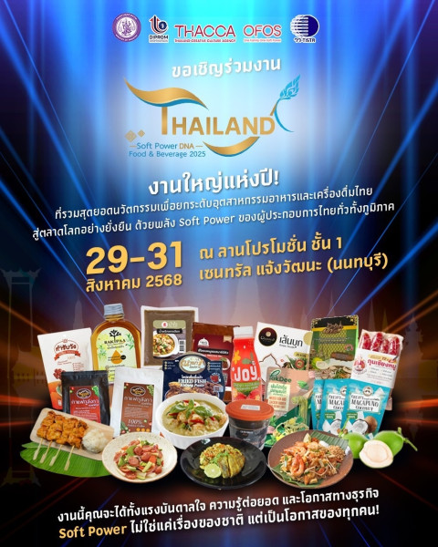 กระทรวงอุตสาหกรรม โดย กรมส่งเสริมอุตสาหกรรม (DIPROM) ร่วมกับภาคีเครือข่ายพันธมิตร กระทรวงการอุดมศึกษา วิทยาศาสตร์ วิจัยและนวัตกรรม (อว.) โดย สถาบันวิจัยวิทยาศาสตร์และเทคโนโลยีแห่งประเทศไทย (วว.) และ สำนักงานส่งเสริมวัฒนธรรมสร้างสรรค์ (THACCA) One Family One Soft Power (OFOS) ร่วมเปิดงานส่งเสริมการตลาด Thailand Soft Power DNA food & beverage ที่มุ่งเน้นกิจกรรมการพัฒนาระบบมาตรฐานสากลสำหรับผลิตภัณฑ์อาหารและเครื่องดื่ม ภายใต้การดำเนินโครงการการส่งเสริมการใช้นวัตกรรมเพื่อยกระดับอุตสาหกรรมอาหารและเครื่องดื่มไทยสู่ตลาดโลกอย่างยั่งยืน ประจำปีงบประมาณ 2568 งานใหญ่แห่งปี !! ที่รวมสุดยอดนวัตกรรมเพื่อยกระดับอุตสาหกรรมอาหารและเครื่องดื่มไทยสู่ตลาดโลกอย่างยั่งยืน ด้วยพลัง Soft Power ของผู้ประกอบการไทยทั่วทั้งภูมิภาค ในการนี้ ในการนี้ ดร.พงศธร ประภักรางกูล รองผู้ว่าการวิจัยและพัฒนาด้านอุตสาหกรรมชีวภาพ นางศิรินันท์ ทับทิมเทศ นักบริหารพิเศษ ผู้บริหาร บุคลากร วว. เข้าร่วมเป็นเกียรติด้วย โดยงานนี้จัดขึ้นระหว่างวันที่ 29 – 31 สิงหาคม 2568 ณ ลานโปรโมชั่น ชั้น 1 เซ็นทรัลพลาซ่า แจ้งวัฒนะ จ.นนทบุรี