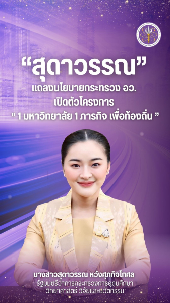 “สุดาวรรณ” แถลงนโยบายกระทรวง อว. เปิดตัวโครงการ “1 มหาวิทยาลัย 1 ภารกิจ เพื่อท้องถิ่น”