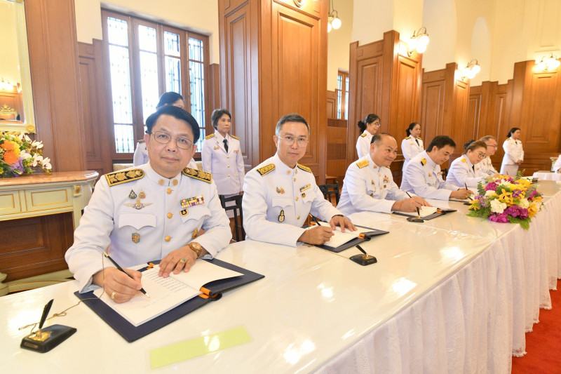 จากนั้น รมว.อว.พร้อมด้วยคณะผู้บริหาร อว. ได้เดินทางไปยังพระบรมมหาราชวัง เชิญแจกันดอกไม้ถวายพระพรชัยมงคล เข้าร่วมลงนามถวายพระพร พระบาทสมเด็จพระเจ้าอยู่หัว เพื่อร่วมแสดงออกถึงความจงรักภักดี และสำนึกในพระมหากรุณาธิคุณอันหาที่สุดมิได้ ณ ศาลาสหทัยสมาคม พระบรมมหาราชวัง