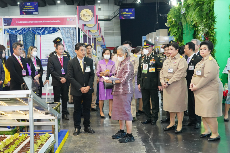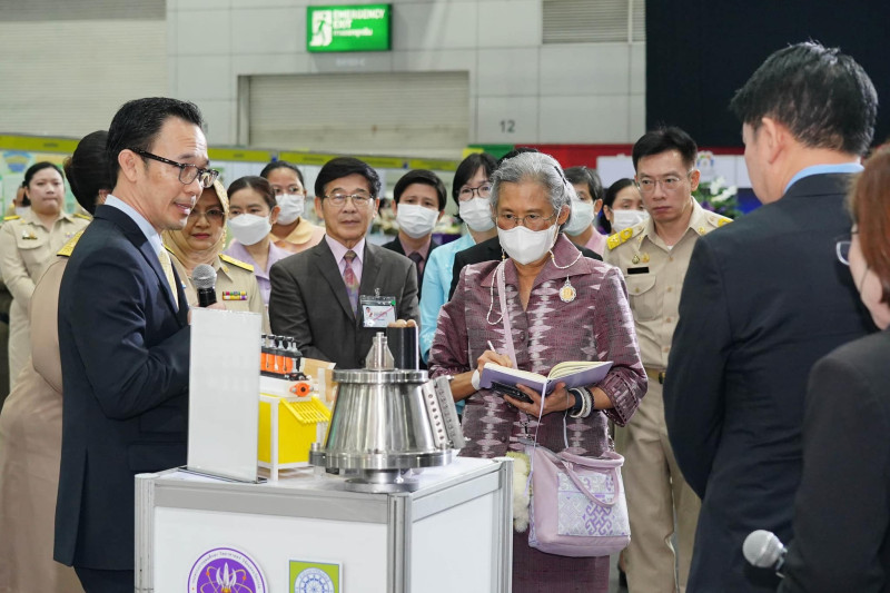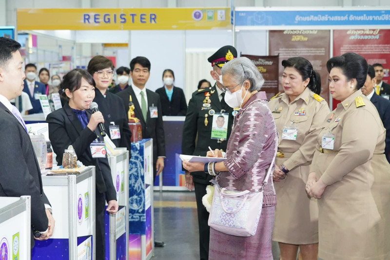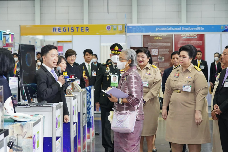 นอกจากนี้ สมเด็จพระกนิษฐาธิราชเจ้า กรมสมเด็จพระเทพรัตนราชสุดาฯ สยามบรมราชกุมารี เสด็จฯ ทอดพระเนตรและทรงเยี่ยมชมนิทรรศการภายในงาน ซึ่งประกอบด้วย นิทรรศการน้อมรำลึกพระบาทสมเด็จพระเจ้าอยู่หัวรัชกาลที่ ๙ “พระบิดาแห่งการประดิษฐ์ไทย” นิทรรศการเฉลิมพระเกียรติ พระบาทสมเด็จพระเจ้าอยู่หัวรัชกาลที่ ๑๐ และนิทรรศการเฉลิมพระเกียรติ สมเด็จพระกนิษฐาธิราชเจ้า กรมสมเด็จพระเทพรัตนราชสุดาฯ สยามบรมราชกุมารี รวมถึงการจัดแสดง สิ่งประดิษฐ์และนวัตกรรมที่ได้รับรางวัล จำนวน ๑๒ ผลงาน อาทิ การศึกษาและรวบรวมการใช้พันธุ์ไม้ประดับลายหม้อปูรณฆฏะในศิลปกรรมล้านนา” (มหาวิทยาลัยแม่โจ้) สีเขียวเพื่อทุกสีสัน : หมึกพิมพ์และสารเคลือบชีวภาพ” (มหาวิทยาลัยเกษตรศาสตร์) I-Sec: เทคโนโลยีการสกัดโปรตีนจากจิ้งหรีดแบบอัตโนมัติ” (มหาวิทยาลัยนเรศวร)