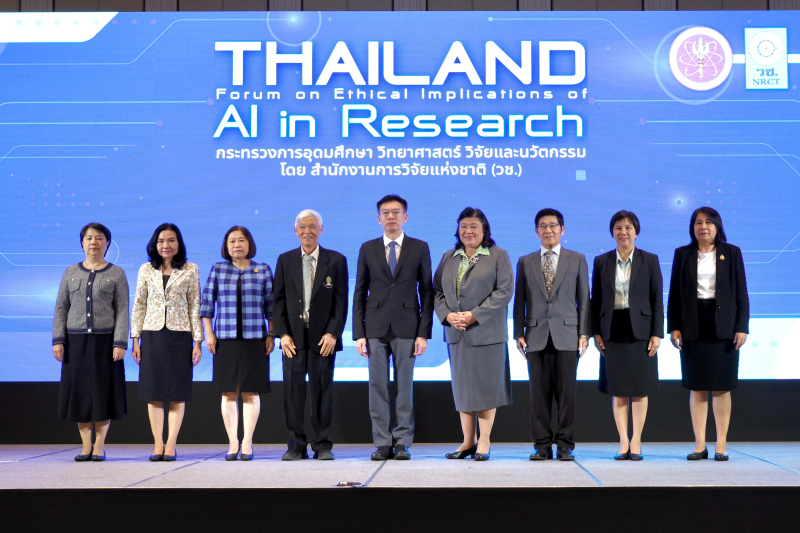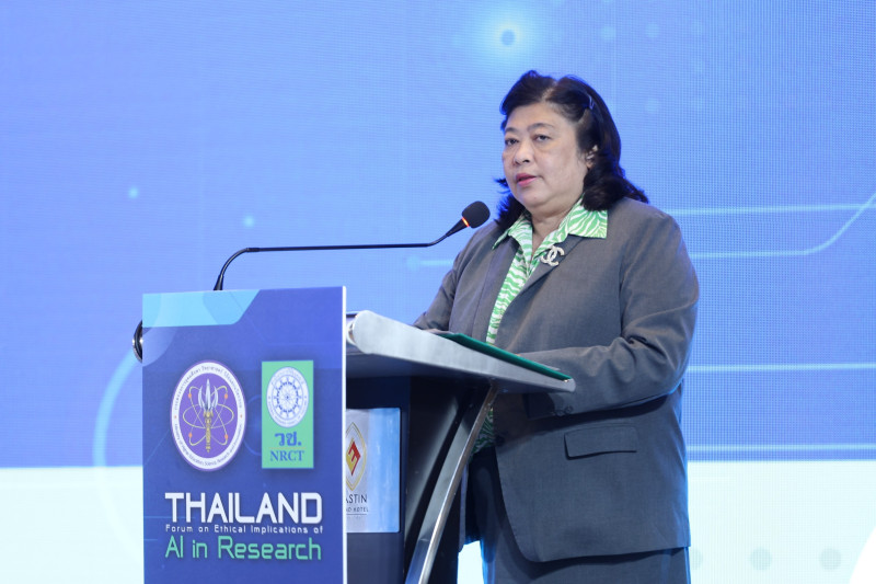 การประชุมเสวนาระดับชาติ “Thailand Forum on Ethical Implications of AI in Research" จัดขึ้นโดยสำนักงานการวิจัยแห่งชาติ (วช.) โดยได้รับเกียรติจาก ศ.นพ.ยง ภู่วรวรรณ และ ศ.กิตติคุณ นพ.สุทธิพร จิตต์มิตรภาพ มาให้ความรู้ด้านจริยธรรมการใช้ AI กับงานวิจัยและวิชาการ ตลอดจนการใช้ AI ในมิติสาขาวิชาการและการบูรณาการศาสตร์ และการเสวนาประเด็นมาตรฐานและจริยธรรมการวิจัย เรื่อง AI Platform และการพิจารณาใช้ในงานวิจัยมาตรฐานและจริยธรรมการวิจัยในสาขาวิชาการและในช่วงบ่ายเป็นการเสวนากลุ่มย่อย ในแต่ละสาขาวิชา เพื่อถ่ายทอดมุมมองเฉพาะด้าน และร่วมกันสรุปข้อเสนอแนะเพื่อนำไปเป็นข้อมูลในการจัดทำ แนวปฏิบัติกลาง (Guidelines) สำหรับการใช้ AI ในงานวิจัยที่เหมาะสม