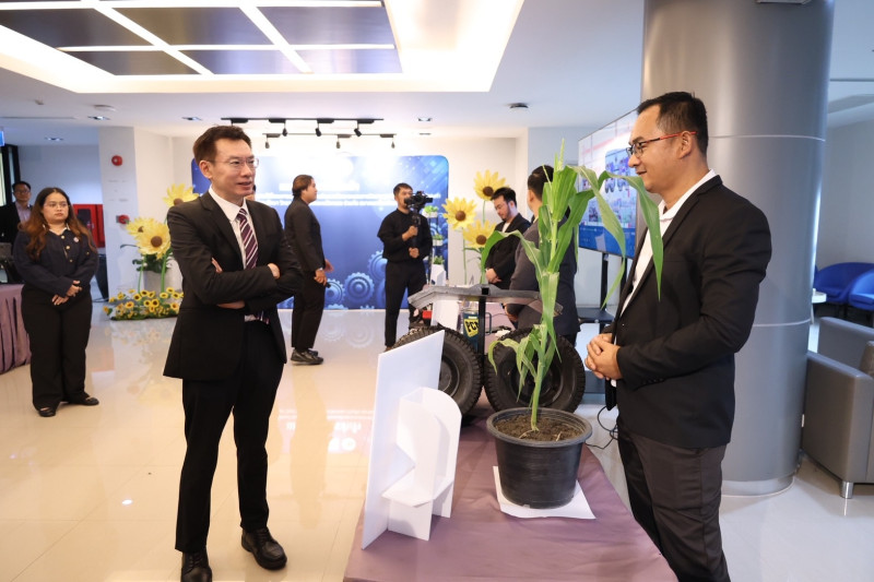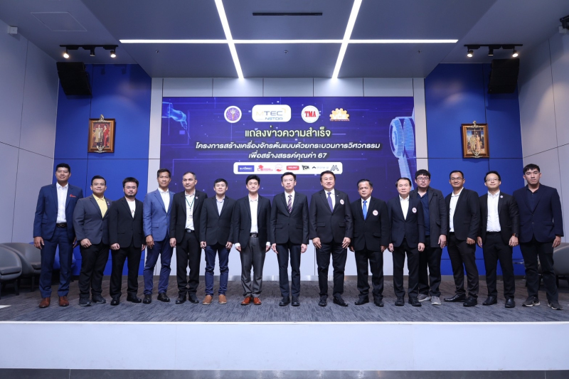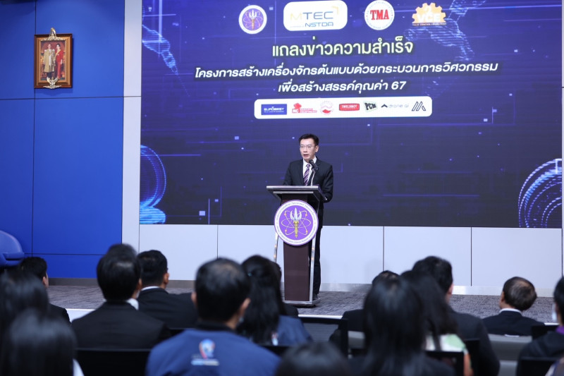 ด้าน ดร.ชาญวิทย์ กล่าวว่า ในปีงบประมาณ พ.ศ.2567 โครงการสร้างเครื่องจักรต้นแบบด้วยกระบวนการวิศวกรรมเพื่อการสร้างสรรค์คุณค่าได้สนับสนุนการพัฒนาผลงานต้นแบบจำนวน 7 ผลงาน ซึ่งแสดงให้เห็นถึงความสำเร็จของภาคเอกชนไทยในการร่วมพัฒนาเทคโนโลยีระดับสูง ได้แก่ (1) โครงการพัฒนาสร้างเครื่องทำผงสารแต่งกลิ่น โดยความร่วมมือกับ บริษัท ยูโร เบสท์ เทคโนโลยี จำกัด (2) โครงการพัฒนาสร้างเครื่องขึ้นรูปขนมปังห่อไส้อัตโนมัติ โดยความร่วมมือกับ บริษัท เอ็นซี เบเกอรี่ อีควิปเม้นท์ จำกัด (3) โครงการพัฒนาสร้างเครื่องอบหมักที่อุณหภูมิและความชื้นสูง โดยความร่วมมือกับ บริษัท การันตีเอ็นจิเนียริ่ง จำกัด (4) โครงการพัฒนาสร้าง CBOT หุ่นยนต์ถอดยอดข้าวโพดเมล็ดพันธุ์ โดยความร่วมมือกับ บริษัท ที.ซี. เวลดิ้ง ออโตเมชั่น จำกัด (5) โครงการพัฒนาสร้างเครื่องตัดหญ้าแบบบังคับวิทยุ ชนิดใบตัดแนวตั้ง (โบวาย) โดยความร่วมมือกับ บริษัท พรเจริญเครื่องจักรกล จำกัด (6) โครงการพัฒนาสร้างแพลตฟอร์มสร้างรายงานความผิดปกติของแผงโซลาร์เซลล์ โดยความร่วมมือกับ บริษัท โดรน เอไอ จำกัด (7) โครงการพัฒนาสร้างเครื่องผสมผงแบบเกลียวคู่พร้อมระบบควบคุมอัตโนมัติ โดยความร่วมมือกับบริษัท มิสชิเบิล เทคโนโลยี จำกัด แสดงให้เห็นถึงศักยภาพของภาคเอกชนไทยที่มีความสามารถในการผลิตนวัตกรรมที่มีความซับซ้อน ผ่านการสนับสนุนของภาครัฐและหน่วยงานเครือข่าย จนเกิดผลสำเร็จที่เป็นรูปธรรม