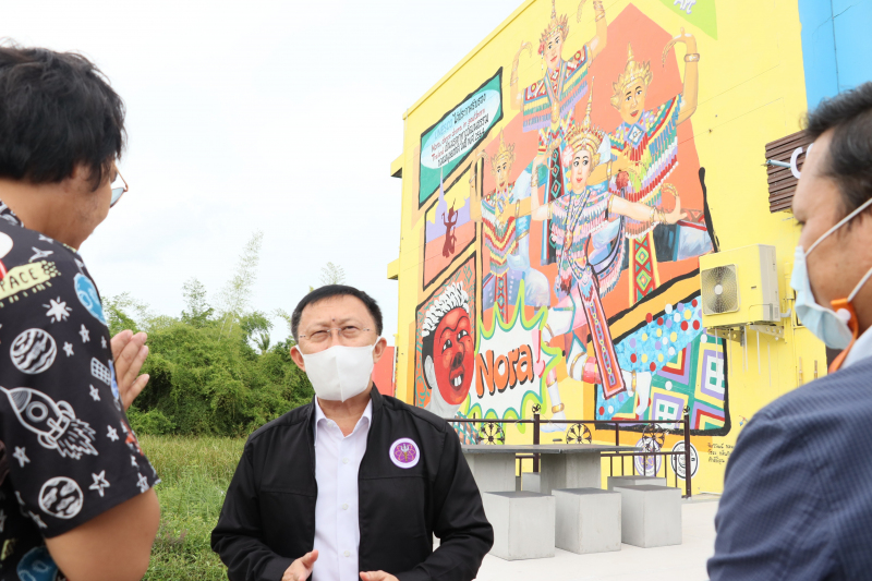ดร.ดนุช ตันเทอดทิตย์ และคณะ ได้เยี่ยมชมภาพผลงาน MHESI Street Art จำนวน 3 จุด ได้แก่ ผนังมโนรา โดยนายเมธี เกิดลาภ ผนังบ้านครูโย่ง เจ้าของบ้าน พ.อ.หญิง จิดาภา เนียมรินทร์ และผนังคนถักอวน โดยนายอรรจน์ สุวรรณุรักษ์ ซึ่งภาพศิลปะเหล่านี้ ได้มีการนำอัตลักษณ์ วัฒนธรรม ประวัติศาสตร์ และวิถีชีวิตความเป็นอยู่ของชุมชนในท้องถิ่น ถ่ายทอดออกมาเป็นภาพศิลปะหรือภาพวาด ตามอาคาร ทางเท้า ป้าย ถนน กำแพง หรืออื่นๆ ในแนว Street Art เพื่อสร้างจุดขายและจุดเช็คอิน อันจะส่งเสริมการท่องเที่ยว และสามารถสร้างรายได้ให้กับพื้นที่ตามนโยบายของกระทรวง อว. ต่อไป