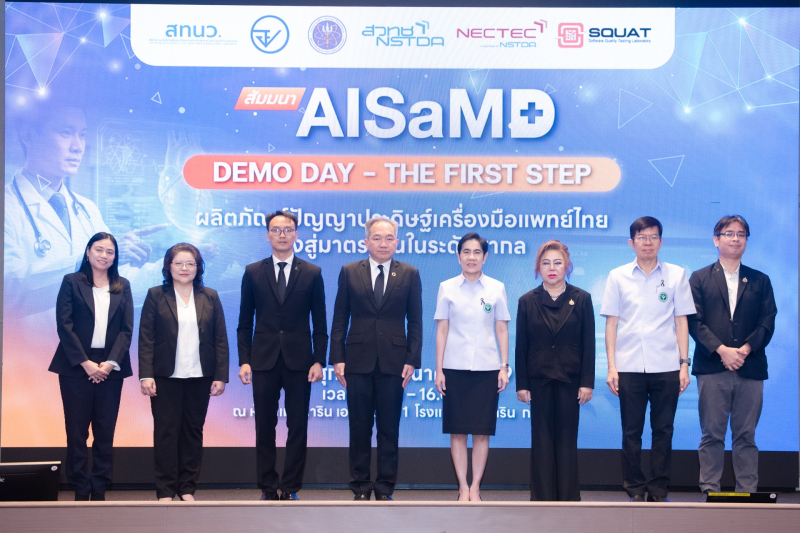 (วันที่ 20 มีนาคม 2569) ณ โรงแรมแมนดาริน กรุงเทพฯ: กระทรวงการอุดมศึกษา วิทยาศาสตร์ วิจัยและนวัตกรรม (อว.) สำนักงานพัฒนาวิทยาศาสตร์และเทคโนโลยีแห่งชาติ (สวทช.) โดย ศูนย์เทคโนโลยีอิเล็กทรอนิกส์และคอมพิวเตอร์แห่งชาติ (เนคเทค) ร่วมกับ สำนักงานคณะกรรมการอาหารและยา (อย.) สำนักงานเทคโนโลยีและนวัตกรรมด้านชีววิทยาศาสตร์ (องค์การมหาชน) (สทนว.) และรังสีวิทยาสมาคมแห่งประเทศไทย (รสท.) จัด "AISaMD Demo Day: The first step ผลิตภัณฑ์ AI เครื่องมือแพทย์ไทย มุ่งสู่มาตรฐานในระดับสากล" ชูไฮไลต์ 5 ผลิตภัณฑ์ AI การแพทย์ที่ผ่านการทดสอบตามมาตรฐานสากล พร้อมประกาศลงนามความร่วมมือ 2 ฉบับสำคัญ ได้แก่ 1. การลงนามความร่วมมือด้านการวิจัยและพัฒนาการประเมิน ตรวจสอบ และทดสอบด้านสมรรถนะและความปลอดภัยของผลิตภัณฑ์เครื่องมือแพทย์รวมถึงเครื่องมือแพทย์ซอฟต์แวร์และปัญญาประดิษฐ์ ระหว่าง สทนว. สวทช. และ อย. และ 2.การลงนามความร่วมมือภายใต้โครงการพัฒนาหลักเกณฑ์และบริการทดสอบ สำหรับผลิตภัณฑ์ปัญญาประดิษฐ์เครื่องมือแพทย์ตามมาตรฐานสากล ระหว่าง เนคเทค-สวทช. และ รทส. เพื่อวางโครงสร้างพื้นฐานด้านการตรวจสอบและกำกับดูแลนวัตกรรมทางการแพทย์ของประเทศ