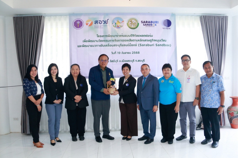 ดร.พัชทรา มณีสินธุ์ รองผู้ว่าการวิจัยและพัฒนาด้านพัฒนาอย่างยั่งยืน สถาบันวิจัยวิทยาศาสตร์และเทคโนโลยีแห่งประเทศไทย (วว.) กระทรวงการอุดมศึกษา วิทยาศาสตร์ วิจัยและนวัตกรรม (อว.) เป็นประธานเปิดการประชุมนำเสนอภาพรวมการดำเนินงานโครงการพัฒนาร่างต้นแบบดิจิทัลแพลตฟอร์มเพื่อพัฒนานวัตกรรมตามหลักเศรษฐกิจหมุนเวียนและพัฒนาแนวทางขับเคลื่อนสระบุรีแซนด์บ็อกซ์ (Saraburi Sandbox) โดยมีวัตถุประสงค์เพื่อเป็นการถอดบทเรียนจากตาลเดี่ยวโมเดลในมิติเทคโนโลยี สังคม และการบริหารจัดการ ออกแบบแนวทางการเชื่อมโยงกับดิจิทัลแพลตฟอร์ม ตลอดจนพัฒนาแนวทางการขับเคลื่อนสระบุรีแซนด์บ็อกซ์ ด้านการจัดการของเสีย ในระดับนโยบาย พื้นที่ และชุมชน ในพื้นที่นำร่องจังหวัดสระบุรี ซึ่งนับเป็นการนำผลงานวิจัยด้านวิทยาศาสตร์ เทคโนโลยี และนวัตกรรม (วทน.) มาใช้ให้เกิดประโยชน์