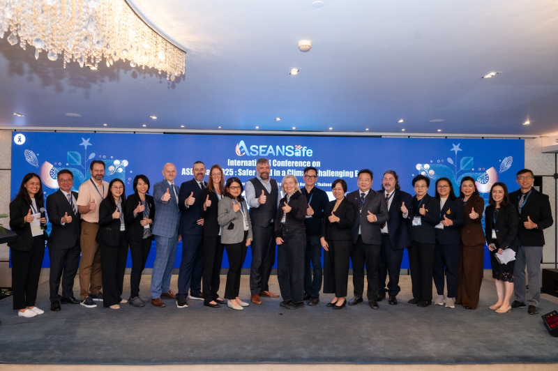 (วันที่ 19 พฤศจิกายน 2568) ณ โรงแรมชาเทรียม ริเวอร์ไซด์ กรุงเทพฯ: กระทรวงการอุดมศึกษา วิทยาศาสตร์ วิจัยและนวัตกรรม (อว.) สำนักงานพัฒนาวิทยาศาสตร์และเทคโนโลยีแห่งชาติ (สวทช.) ร่วมกับ มหาวิทยาลัยธรรมศาสตร์, ศูนย์วิจัยนานาชาติด้านความมั่นคงอาหาร (IJC-FOODSEC), สหภาพยุโรป, หน่วยบริหารและจัดการทุนด้านการพัฒนากำลังคนและทุนด้านการพัฒนาสถาบันอุดมศึกษา การวิจัยและการสร้างนวัตกรรม (บพค.), มูลนิธิบัณฑิตยสภาวิทยาศาสตร์และเทคโนโลยีแห่งประเทศไทย (บวท.), จัดงานประชุมนานาชาติ ASEANSafe 2025: Building Resilient Communities for a Safe ASEAN ระหว่าง วันที่ 19-20 พฤศจิกายน 2568 เพื่อเป็นเวทีระดับนานาชาติในการแลกเปลี่ยนองค์ความรู้ นวัตกรรม และแนวทางปฏิบัติที่ดีที่สุดด้านความปลอดภัยอาหารภายใต้ความท้าทายจากการเปลี่ยนแปลงสภาพภูมิอากาศ ครอบคลุมทุกห่วงโซ่อาหาร พร้อมผลักดันความร่วมมือเชิงยุทธศาสตร์ การถ่ายทอดเทคโนโลยี และการพัฒนาศักยภาพบุคลากรในภูมิภาค
