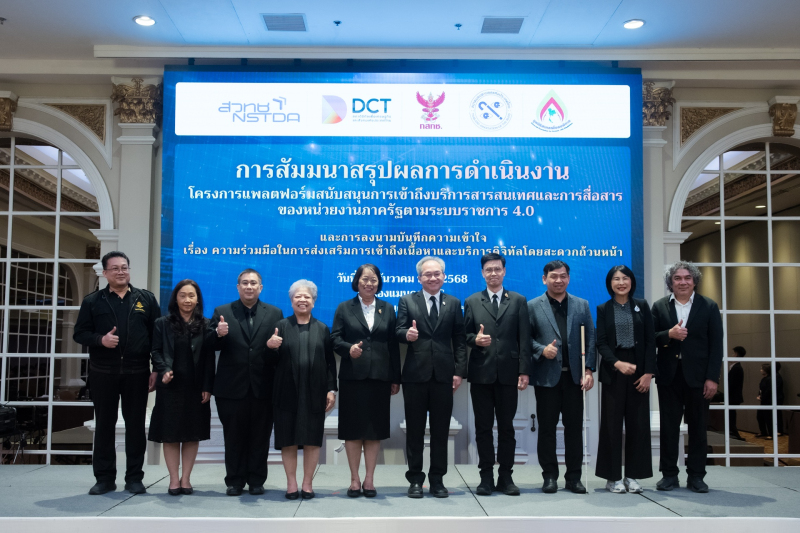 (16 ธันวาคม 2568) ที่ห้องแมนดาริน C โรงแรมแมนดาริน กรุงเทพฯ: กระทรวงการอุดมศึกษา วิทยาศาสตร์ วิจัยและนวัตกรรม (อว.) โดยสำนักงานพัฒนาวิทยาศาสตร์และเทคโนโลยีแห่งชาติ (สวทช.) จัดพิธีลงนามบันทึกบันทึกความเข้าใจในการส่งเสริมการเข้าถึงเนื้อหาและบริการดิจิทัลโดยสะดวกถ้วนหน้า ระหว่าง สวทช. สำนักงานคณะกรรมการกิจการกระจายเสียง กิจการโทรทัศน์ และกิจการโทรคมนาคมแห่งชาติ (กสทช.), สภาดิจิทัลเพื่อเศรษฐกิจและสังคมแห่งประเทศไทย, สมาคมคนตาบอดแห่งประเทศไทย, มูลนิธิสากลเพื่อคนพิการ, สำนักงานคณะกรรมการดิจิทัลเพื่อเศรษฐกิจและสังคมแห่งชาติ, สำนักงานคณะกรรมการพัฒนาระบบราชการ, สำนักงานพัฒนาธุรกรรมทางอิเล็กทรอนิกส์, สำนักงานพัฒนารัฐบาลดิจิทัล (องค์การมหาชน), กรมส่งเสริมและพัฒนาคุณภาพชีวิตคนพิการ, สำนักงานกองทุนสนับสนุนการสร้างเสริมสุขภาพ และมูลนิธิอินเทอร์เน็ตร่วมพัฒนาไทย โดยมีวัตถุประสงค์เพื่อสร้างความร่วมมือในการส่งเสริมการเข้าถึงเนื้อหาและบริการดิจิทัลจากทั้งภาครัฐและภาคเอกชนอย่างทั่วถึงสำหรับคนพิการและกลุ่มเปราะบาง ได้แก่ การผลักดันให้เกิดเนื้อหาและบริการดิจิทัลที่ทุกคนเข้าถึงและใช้ประโยชน์ได้ ตามแนวทางปฏิบัติของ Web Accessibility Initiative (WAI) ขององค์กร World Wide Web Consortium (W3C) ที่เป็นคณะทำงานกำหนดมาตรฐานระดับสากล และสร้างเอกสารสนับสนุนการจัดทำเว็บไซต์และโมบายแอปพลิเคชันตามมาตรฐาน, การสร้างความตระหนักรู้ถึงความสำคัญและสร้างแรงจูงใจให้กับผู้ประกอบการในการพัฒนาการเข้าถึงเนื้อหาและบริการดิจิทัลโดยสะดวกถ้วนหน้าที่ครอบคลุมกลุ่มคนพิการและกลุ่มเปราะบางทุกประเภท ตลอดจนสร้างความเชื่อมโยงระหว่างภาครัฐ ผู้ประกอบการ และเครือข่ายคนพิการและกลุ่มเปราะบางในการส่งเสริมการเข้าถึงเนื้อหาและบริการดิจิทัล รวมถึงการผลักดันกฎหมายและนโยบายที่เป็นการส่งเสริมการเข้าถึงเนื้อหาและบริการดิจิทัล